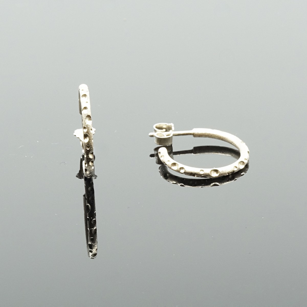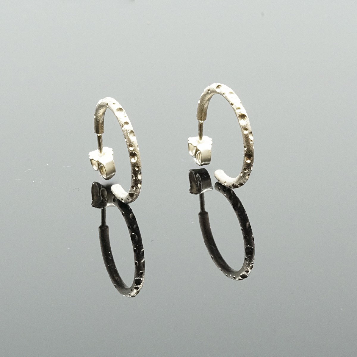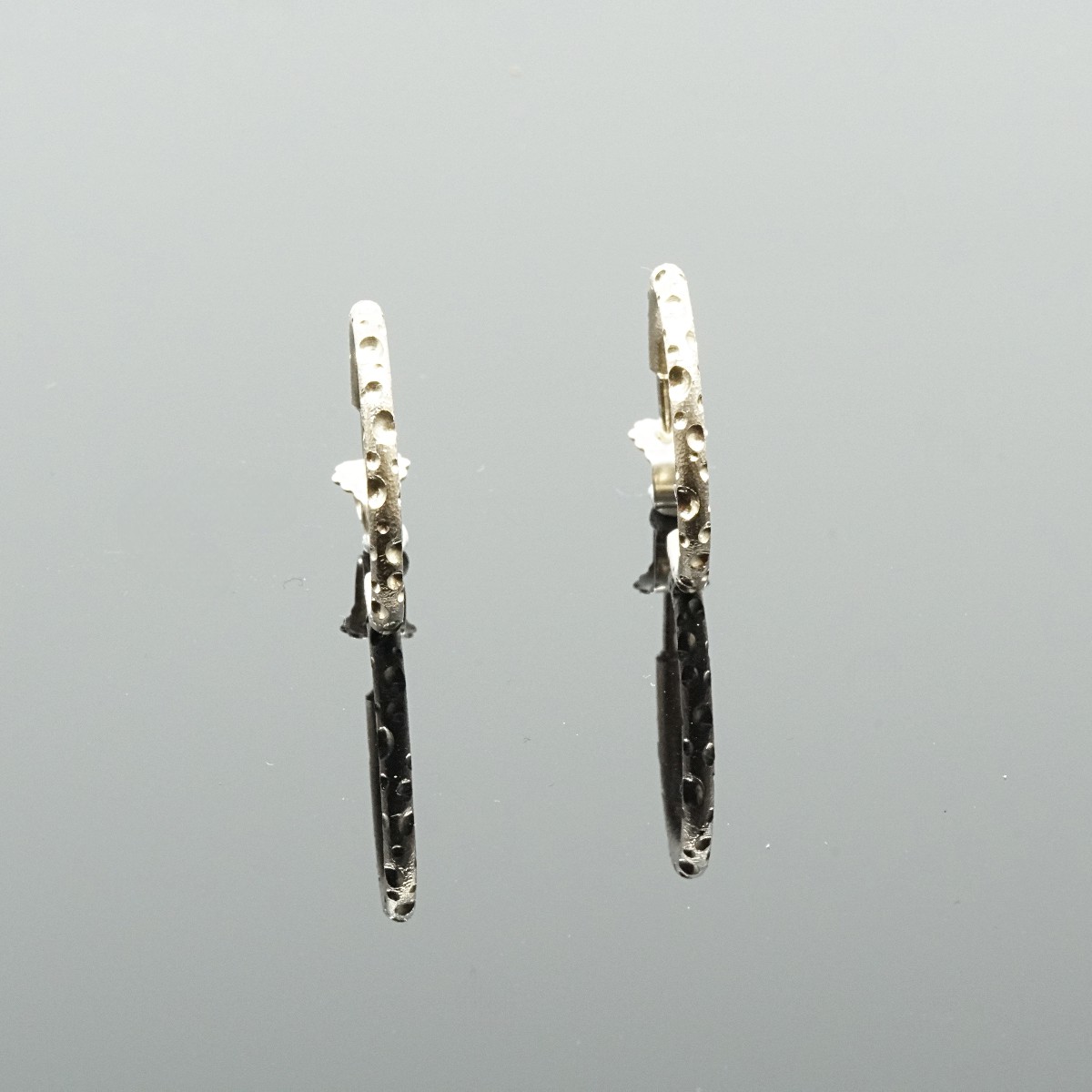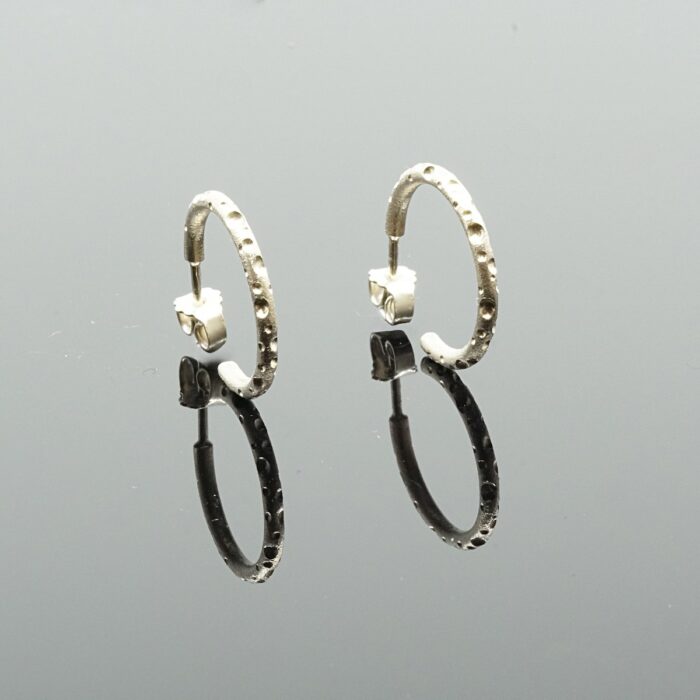 Øreringene er fremstillet i 2 mm tråd med individuelt fræsede huller i forskelige størrelser.