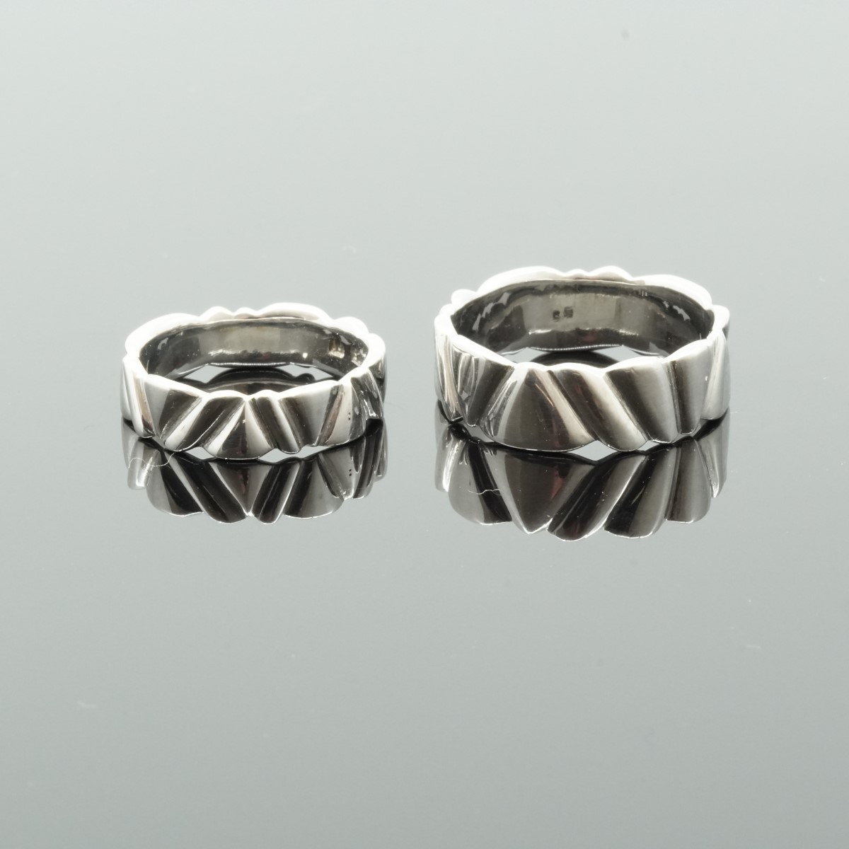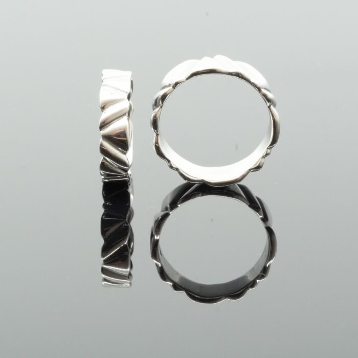 Ringene har en overflade med bløde organiske former, der er inspireret af bølger.