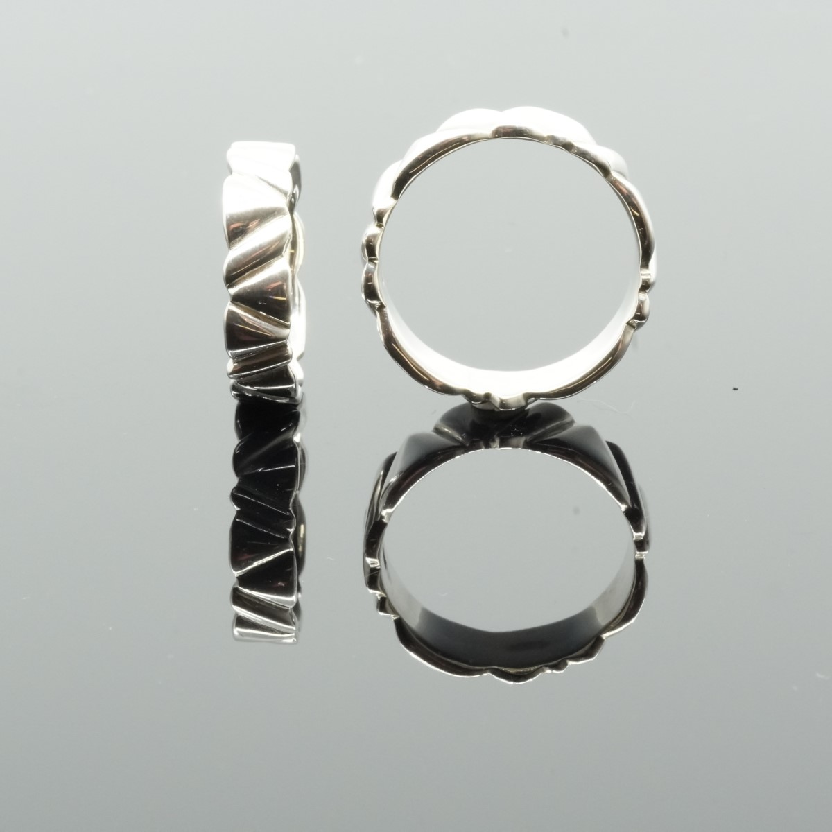 Ringene har en overflade med bløde organiske former, der er inspireret af bølger.