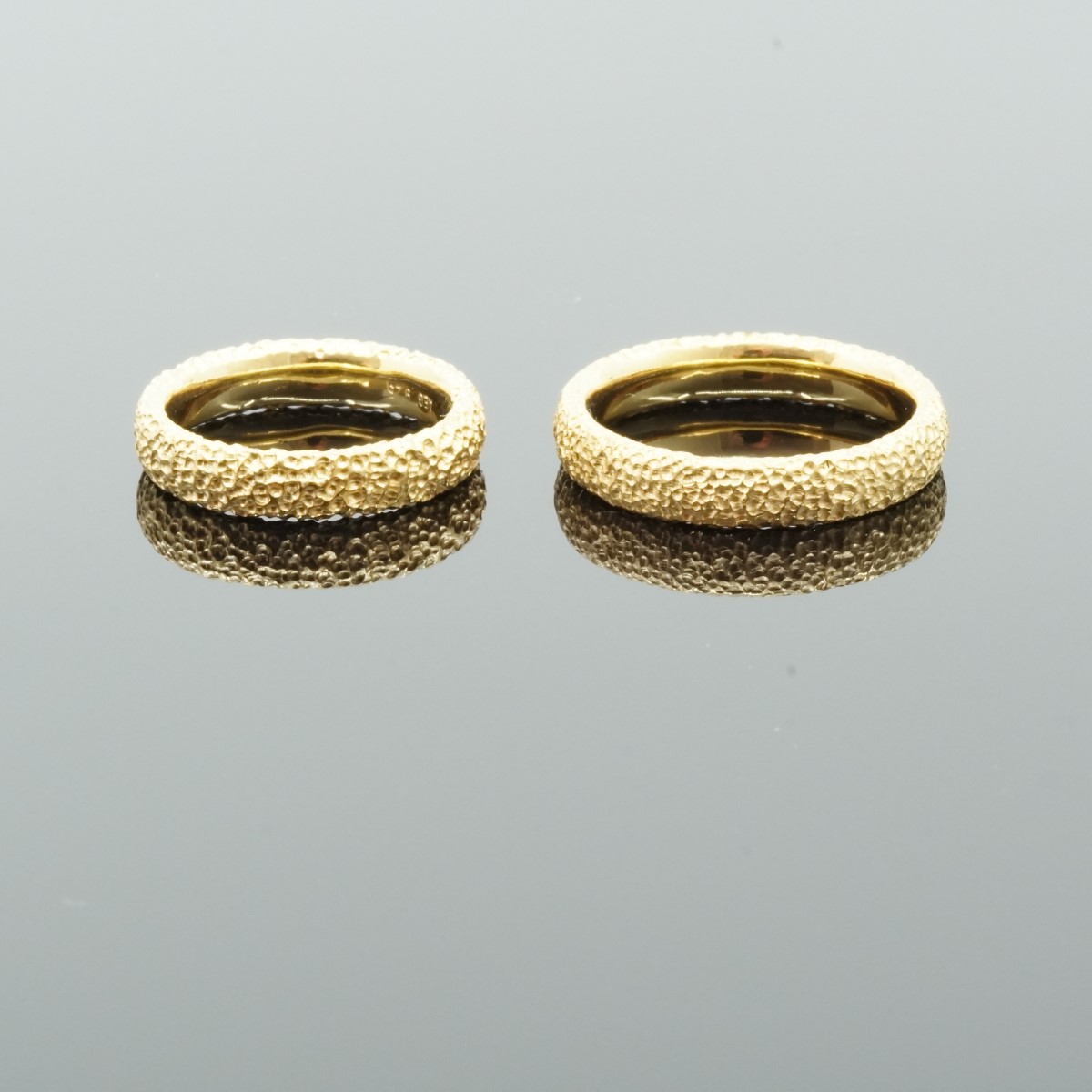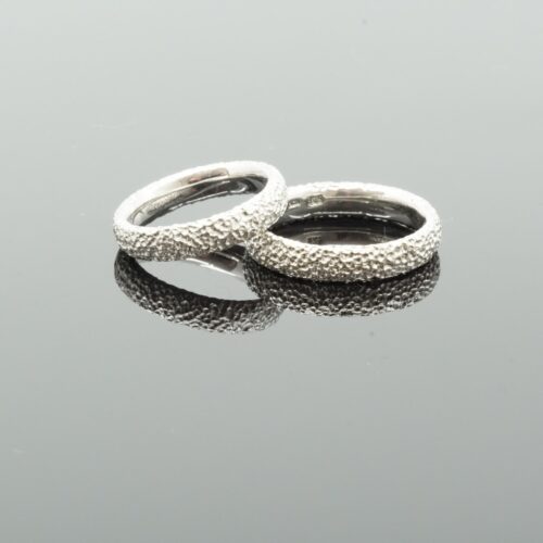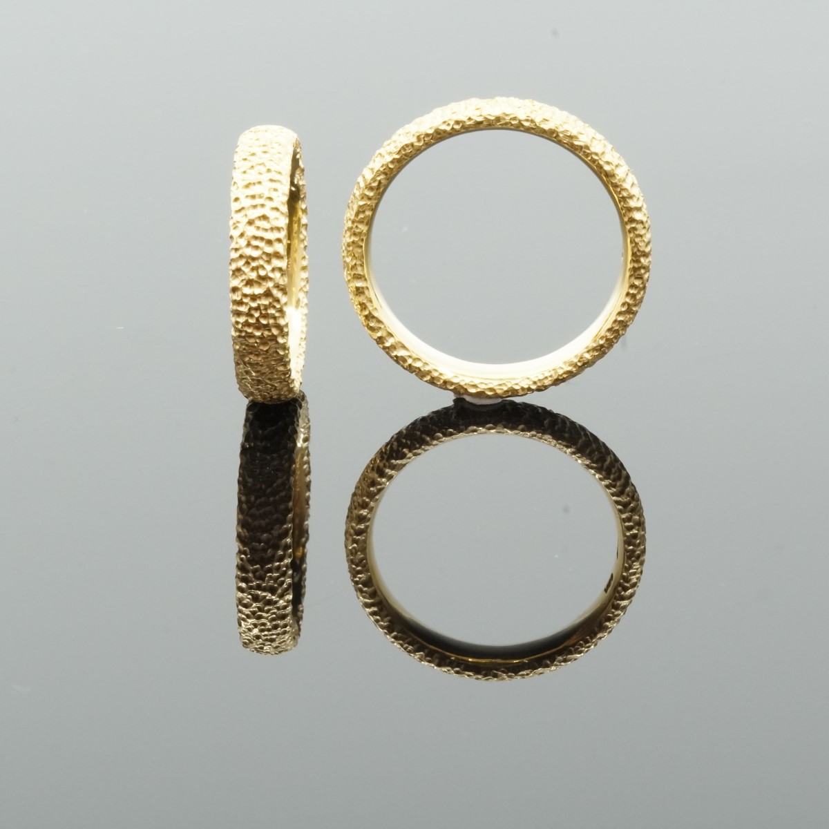 Ringene har en kuglefræset overflade der giver fornemmelsen af sandstruktur. Ringen er blankpoleret indvendig.
